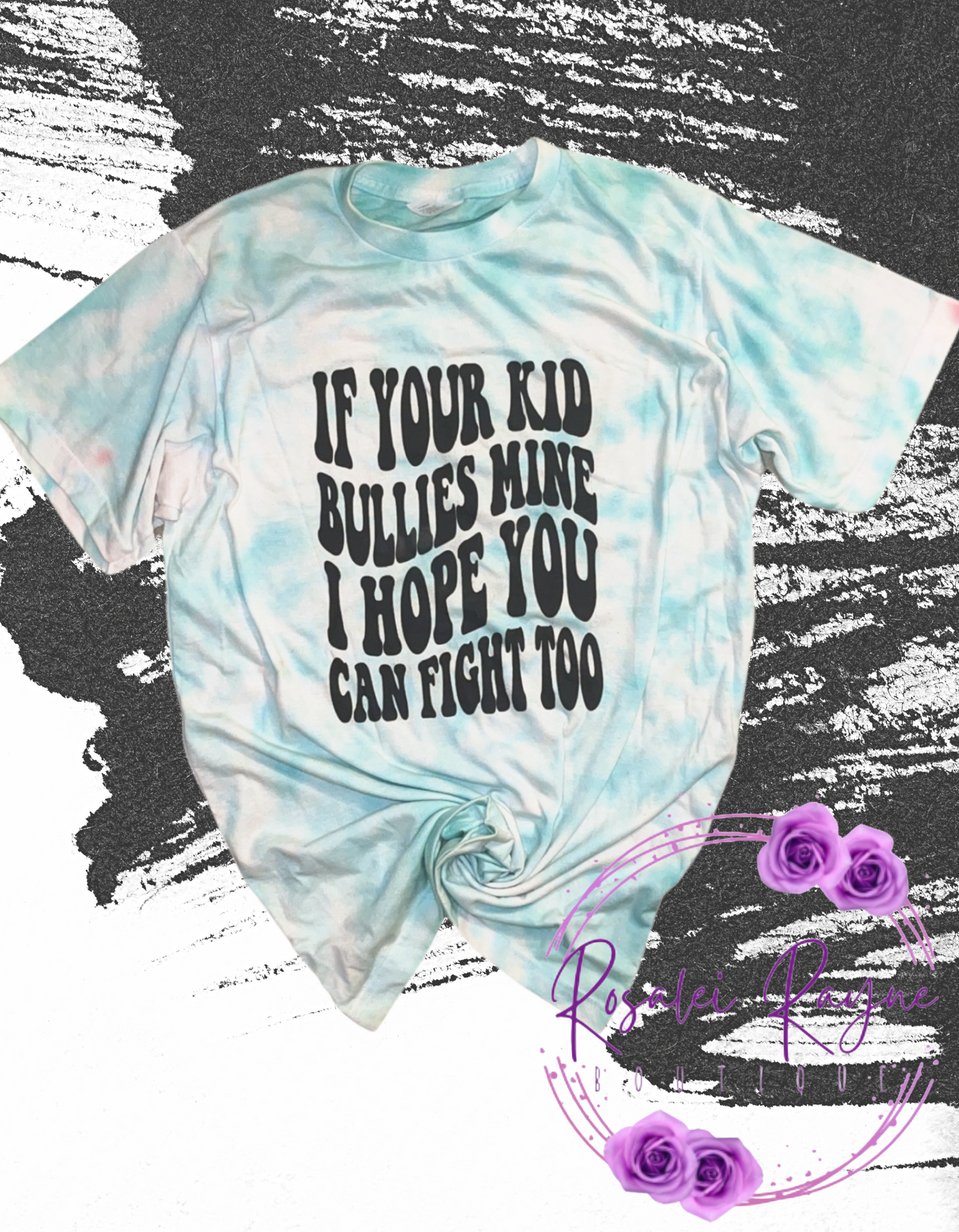 Hand made tie dyed tees! Says "If your kid bullies mine I hope you can fight too"
