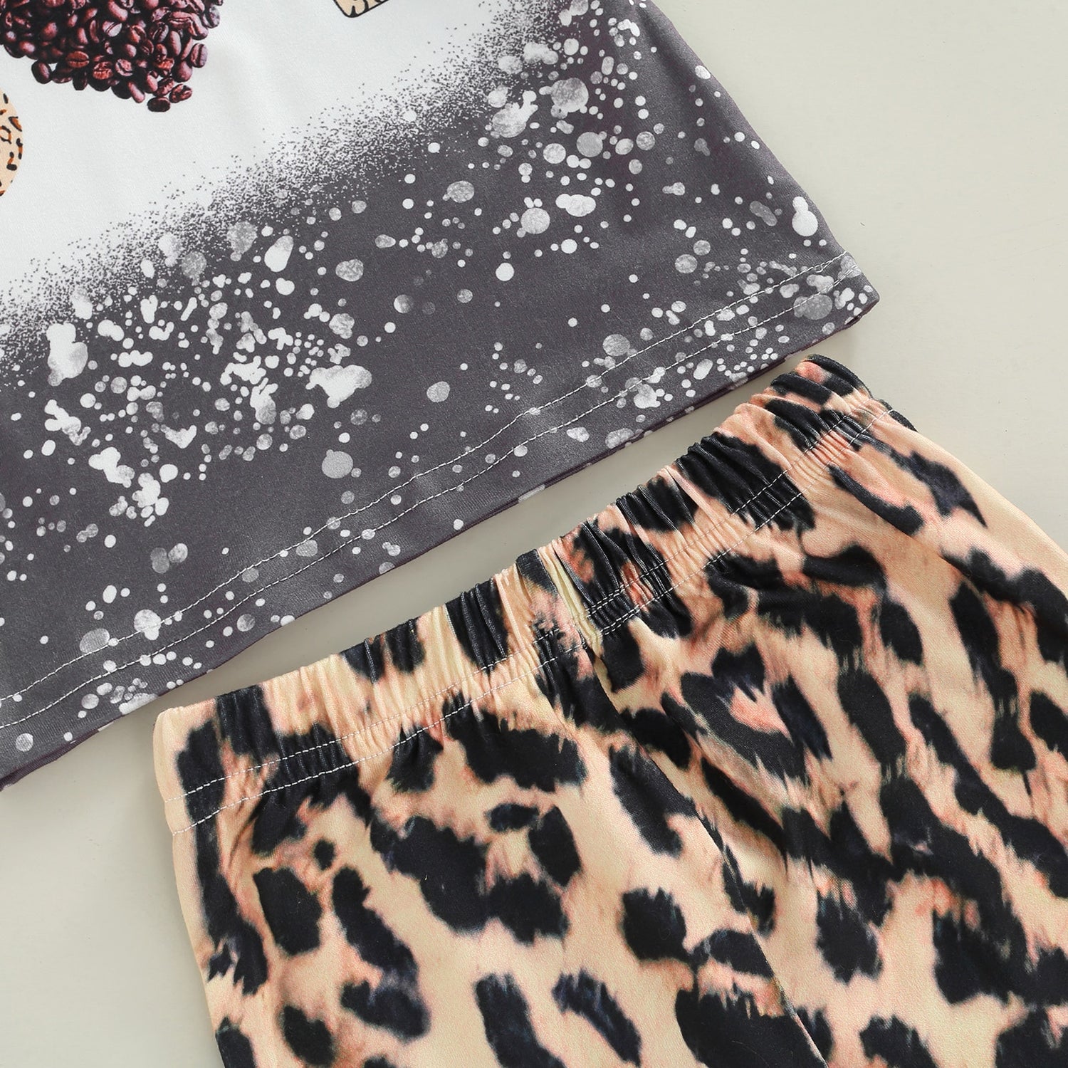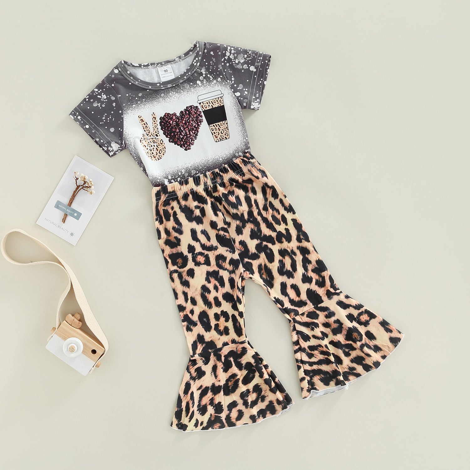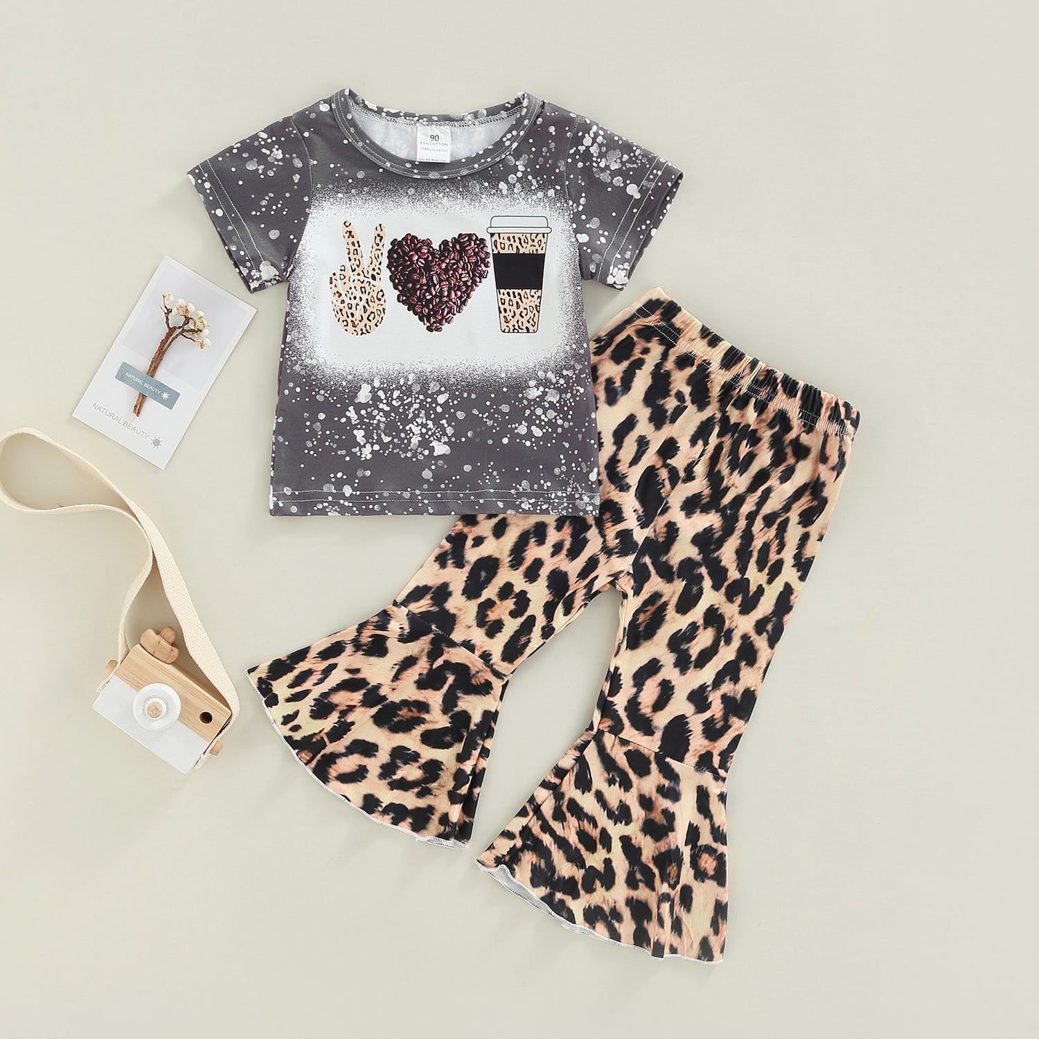 Our Peace Love Coffee Toddler Leopard Outfit, a comfortable and stylish ensemble for trendy little ones. Featuring a playful leopard print and a "Peace Love Coffee" design, it showcases their unique personality with adorable charm. Let your child express their love for coffee and their wild side in this fashionable outfit.